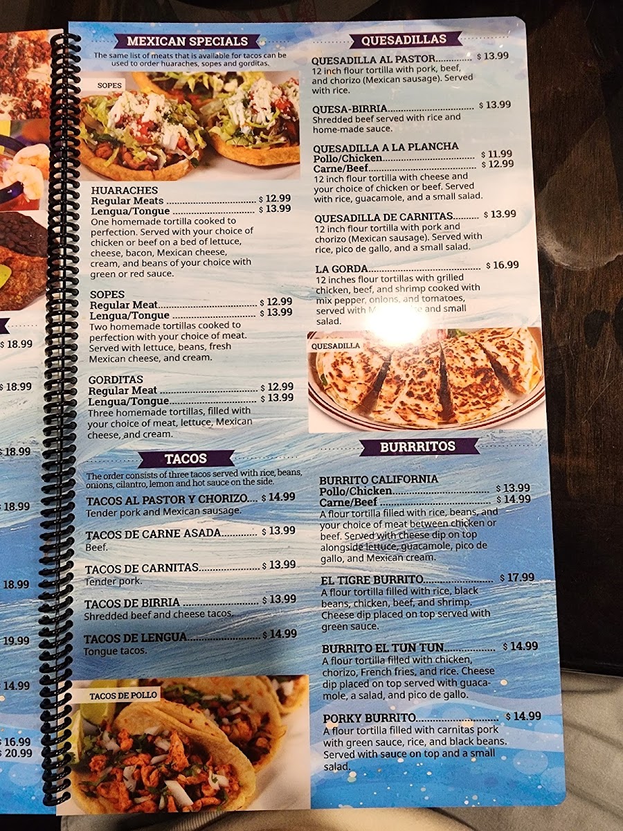 Grilled chicken breast, steak, shrimp, chorizo & carnitas / pork, with Mexican cheese, cactus & chile toreado. Served with rice & beans.